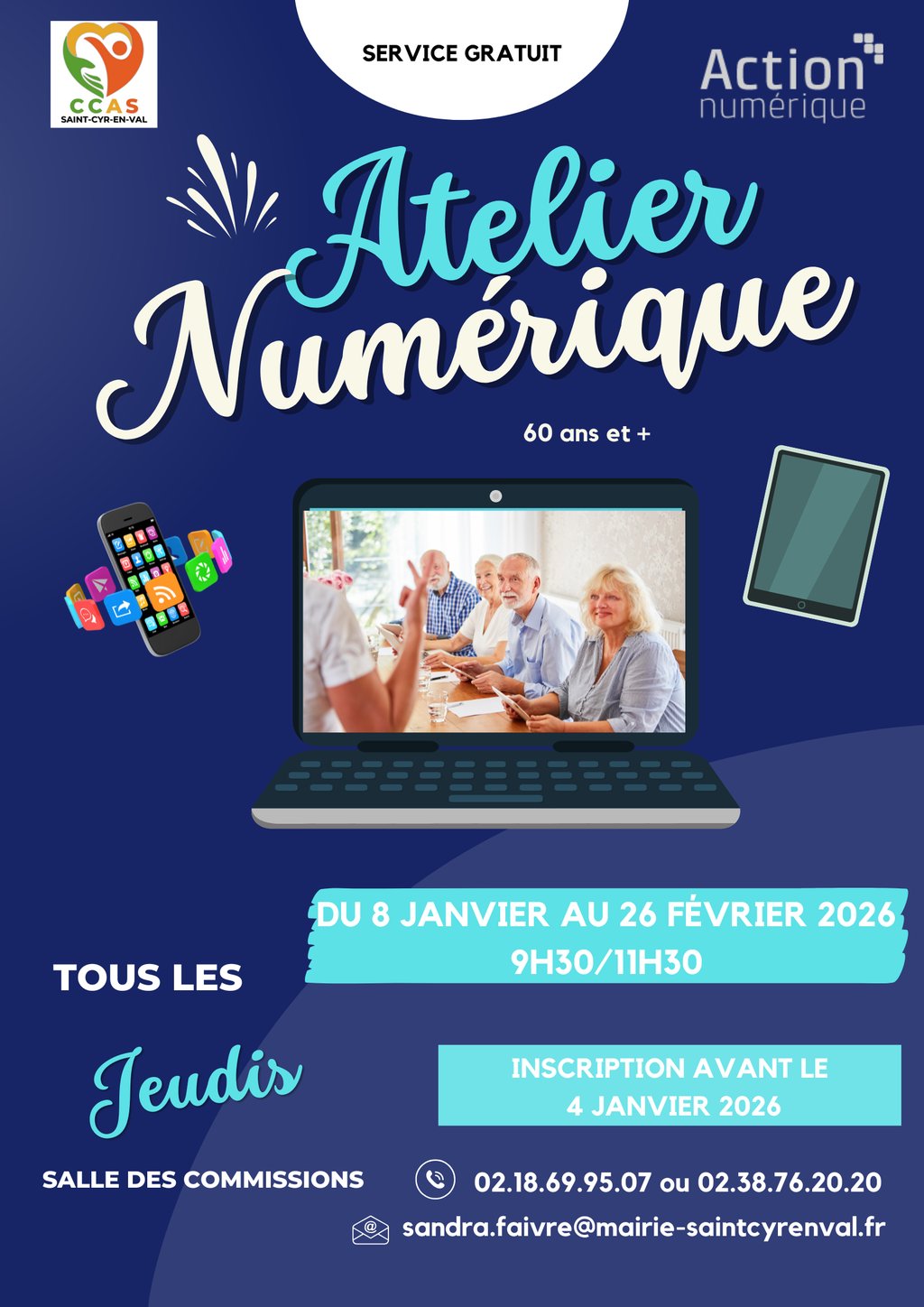 Inscription avant le 4 janvier 2026 auprès de CCAS : 02.38.76.20.20 / 02.18.69.95.07