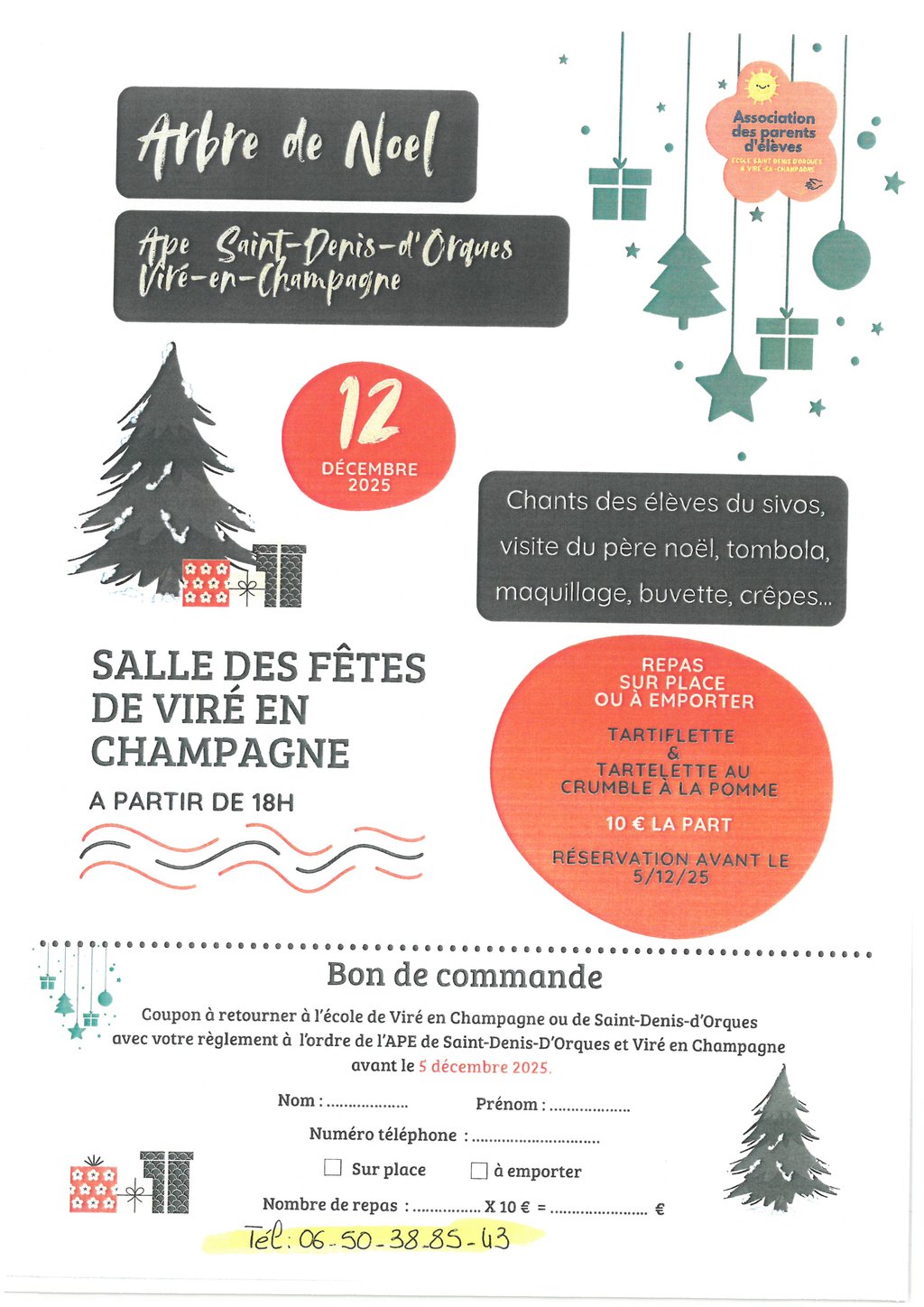 12 décembre 2025 - 18h à Viré en Champagne : Arbre de Noël de l'APE du SIVOS