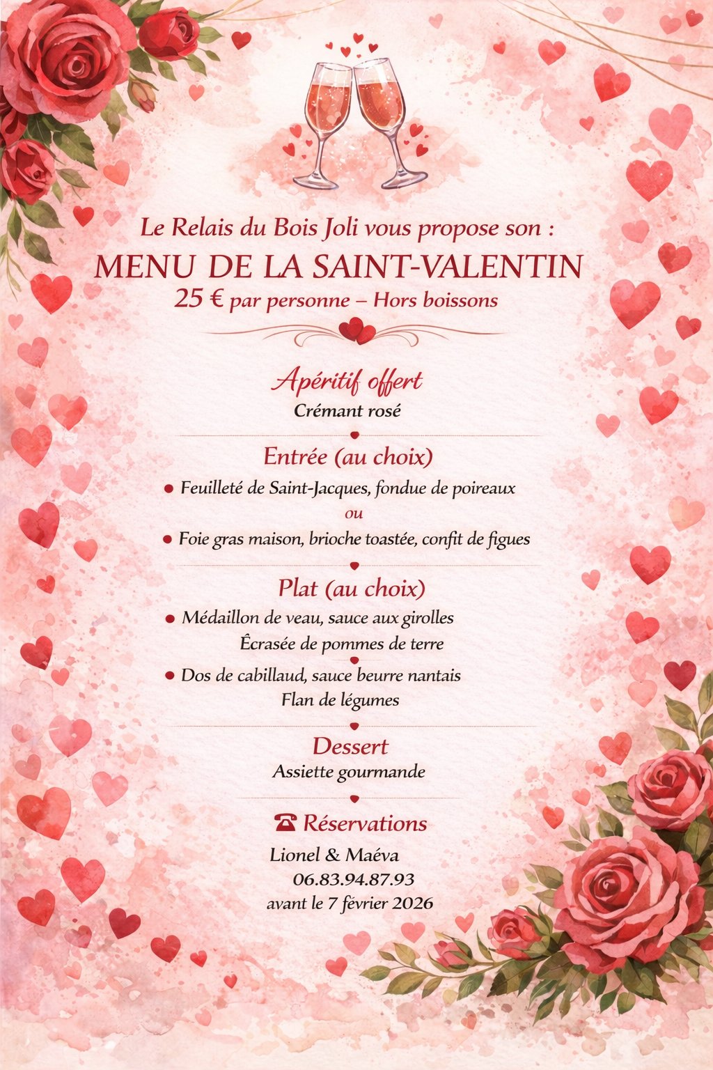 Lionel et Maeva vous proposent leur menu pour la Saint Valentin.