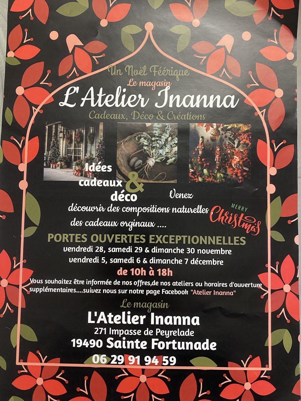 Pour vos cadeaux de Noël, l'Atelier Inanna vous ouvre ses portes les vendredi 5, samedi 6 et dimanche 7 décembre.