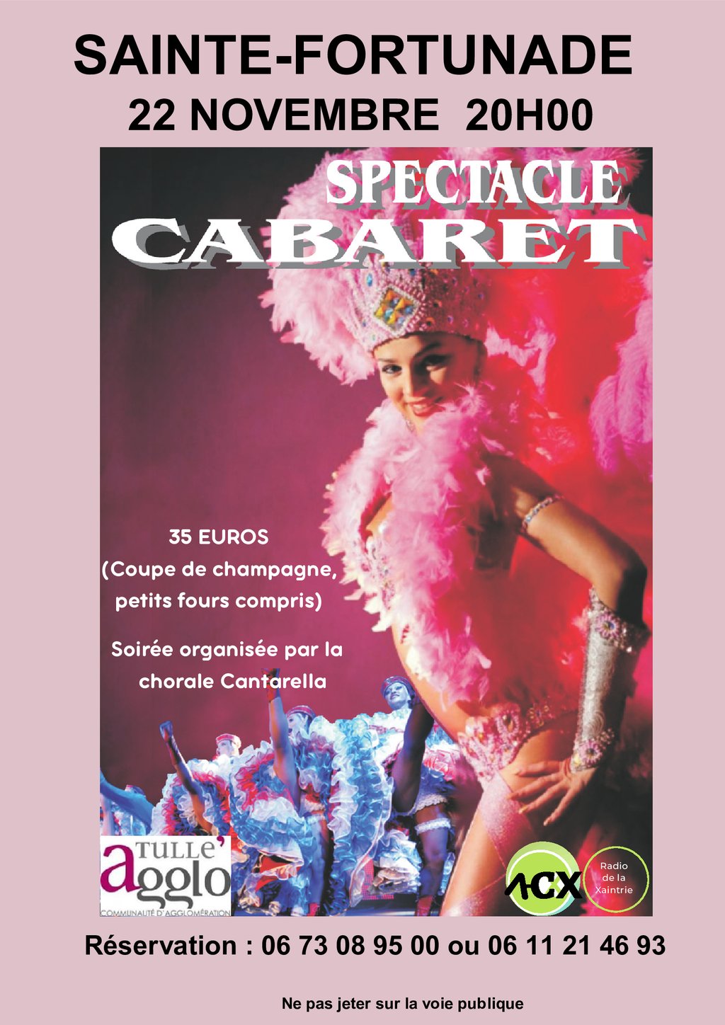 La chorale Cantarella vous convie à un spectacle Cabaret le 22 novembre à 20 heures dans la salle polyvalente de Sainte-Fortunade.