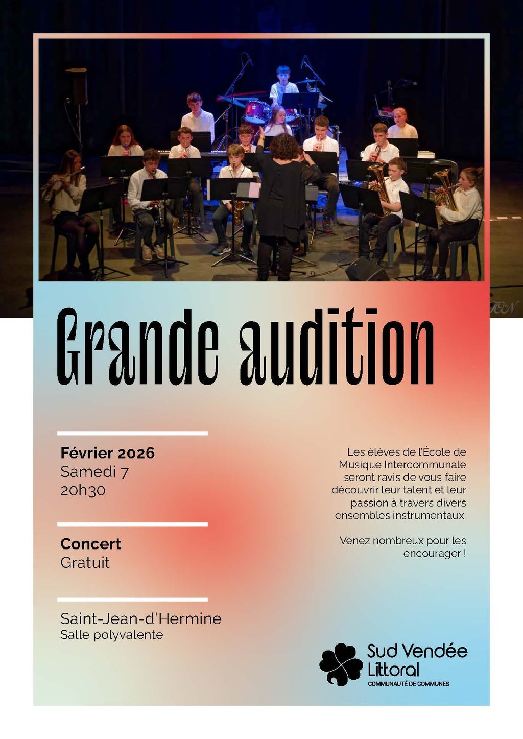 Les élèves de l'Ecole de Musique Intercommunale seront ravis de vous faire découvrir leur talent et leur passion à travers divers ensembles instrumentaux.