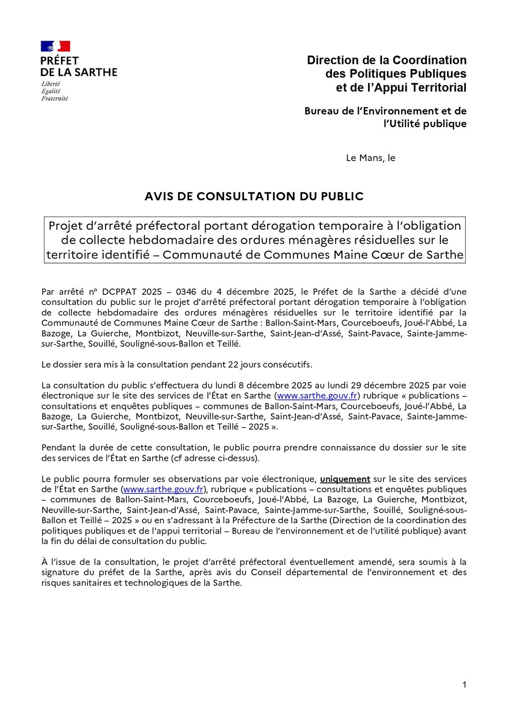AVIS DE CONSULTATION DU PUBLIC - ORDURES MÉNAGÈRES