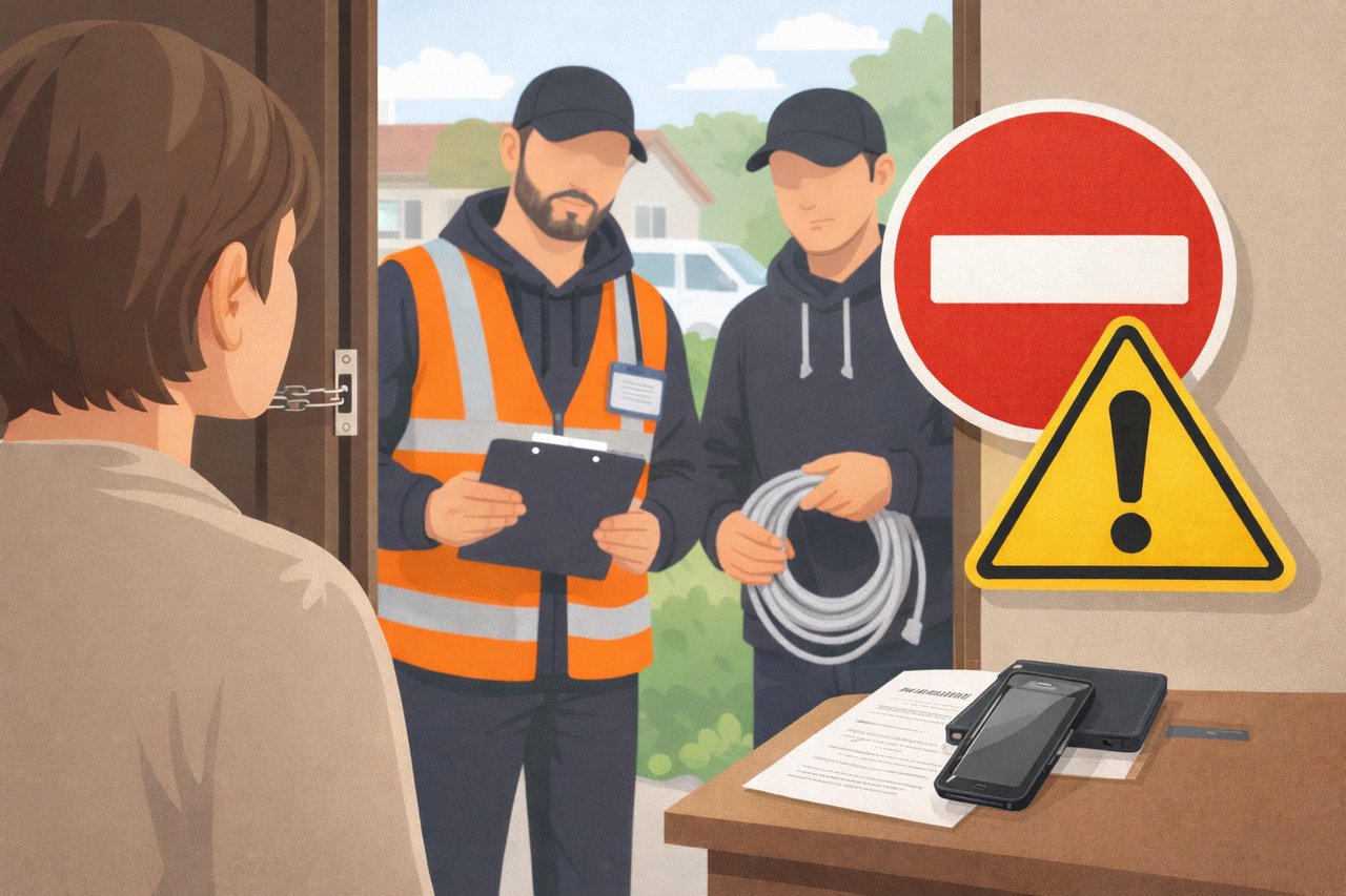 Nous avons été alertés par plusieurs habitants de notre commune concernant des démarcheurs se présentant à domicile pour "vérifier les box internet" ou "changer les câbles de la fibre", sous prétexte d’une intervention technique imminente.