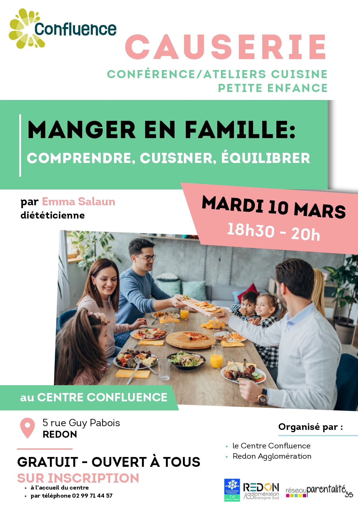 Une conférence Causerie est organisée sur le thème « Manger en famille : Comprendre, cuisiner, équilibrer » animée par Emma Salaun, diététicienne.