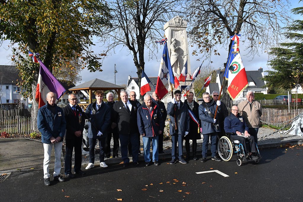 À 11h00, nos 3 porte-drapeaux dont 2 jeunes de notre commune âgés seulement de 12 et 17 ans Romain LEPLAT et Paul MATHURIN, et Jean-Luc MEILLERAY en qualité de soldat de France, se mettaient en place face au monument aux morts.
