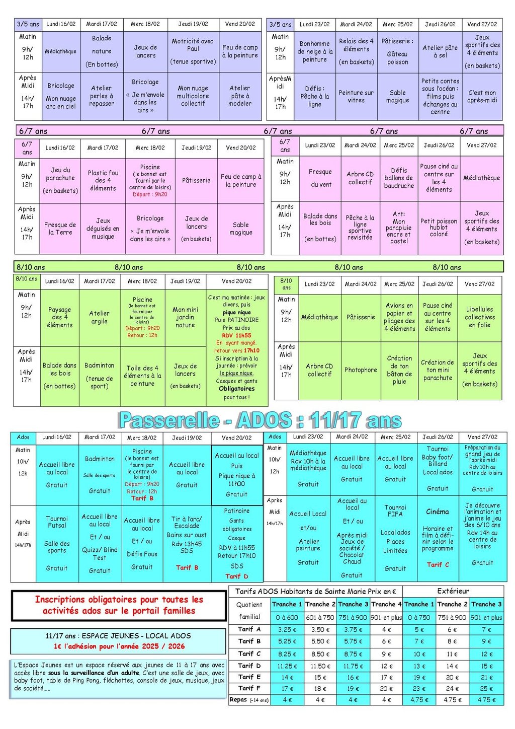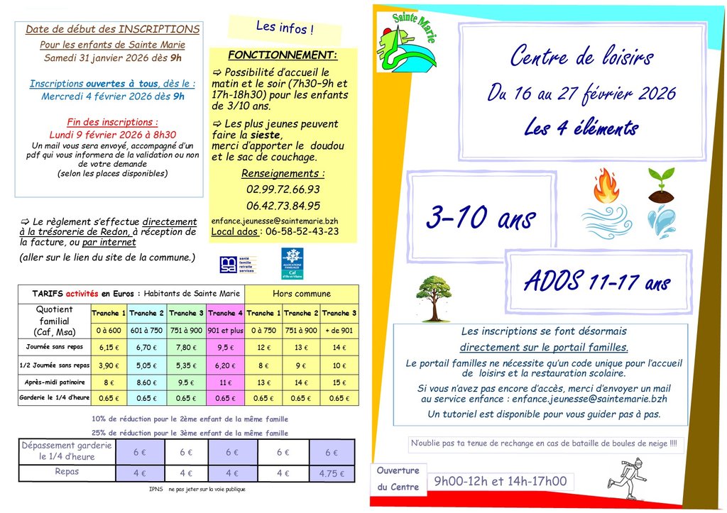 INSCRIPTIONS ACCUEIL DE LOISIRS - VACANCES DE FÉVRIER