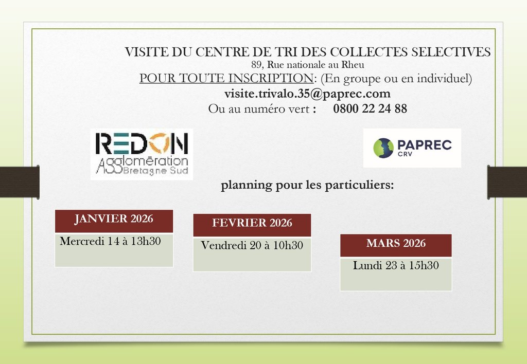 Les inscriptions se font directement près de Paprec par mail (visite.trivalo.35@paprec.com) ou par téléphone (08.00.22.24.88).