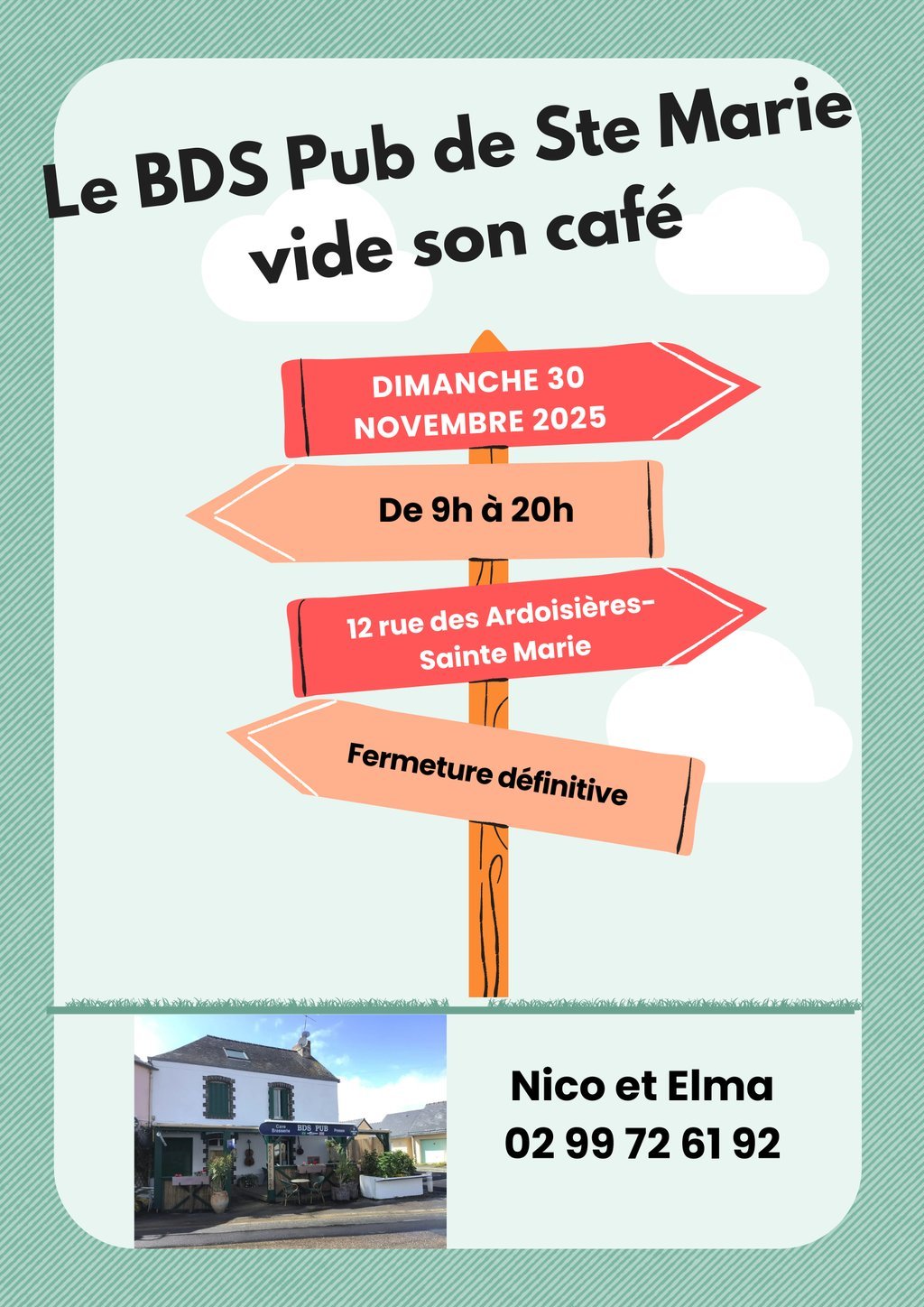 Le BDS PUB à fermé définitivement ses portes. Il propose un vide café et maison. Venez acheter du matériel de cuisine et des meubles pour votre maison !