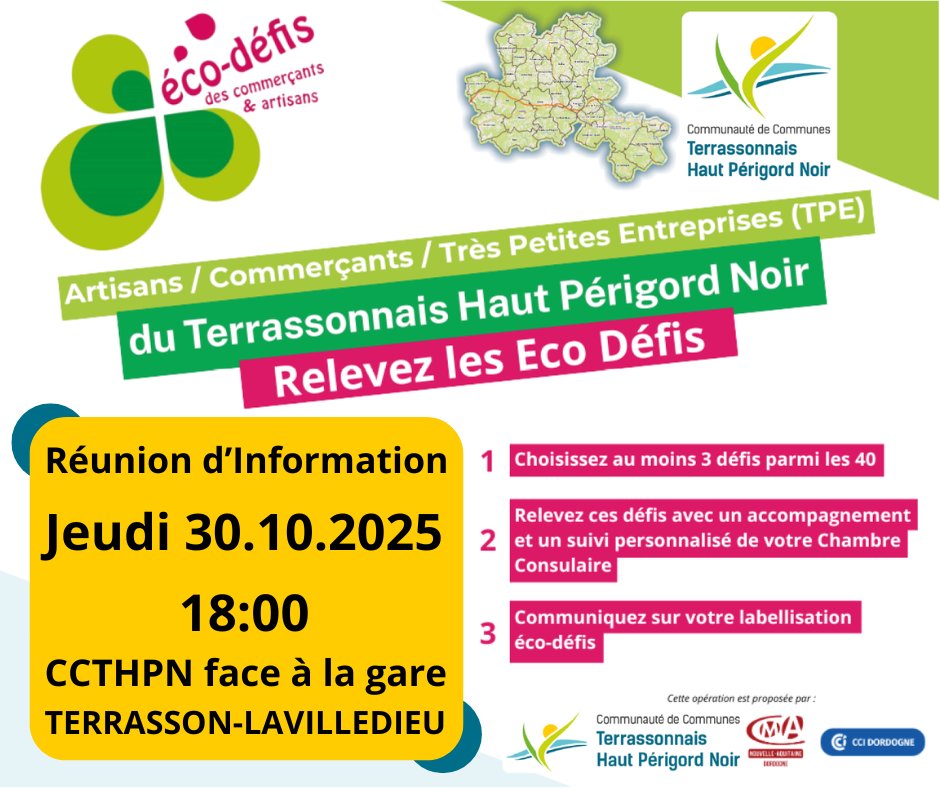 La Communauté de communes Terrassonnais Haut Périgord Noir, en partenariat avec la CCI Dordogne et la CMA 24, lance les Éco-Défis sur notre territoire.