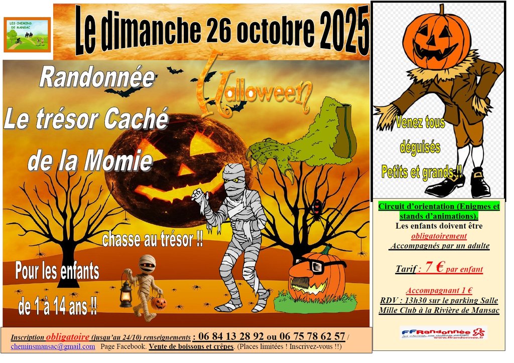 Les Chemins de Mansac, organise sa 5ème chasse aux trésors d'Halloween ...Le Dimanche 26 Octobre 2025
