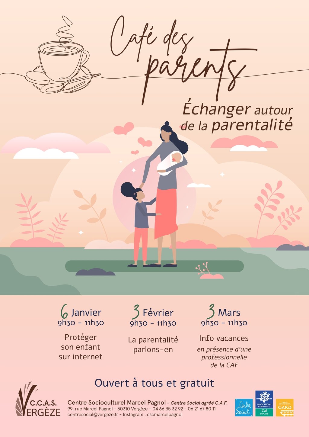 Venez échanger vos expériences ou préoccupations de Parents avec l'appui de la référente famille autour d'une boisson chaude.