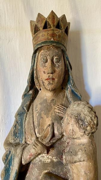 Une fois entré, outre quelques statues de saints, l’½il est attiré par l’immense tableau situé derrière le c½ur qui a été restauré il y a quelques dizaines d’années, et surtout par une magnifique statue en bois polychrome de la Vierge Marie. Datée du 16ème siècle, il s’agit d’une Vierge allaitante dont la rareté lui vaut d’être inscrit à l’inventaire des monuments historiques.