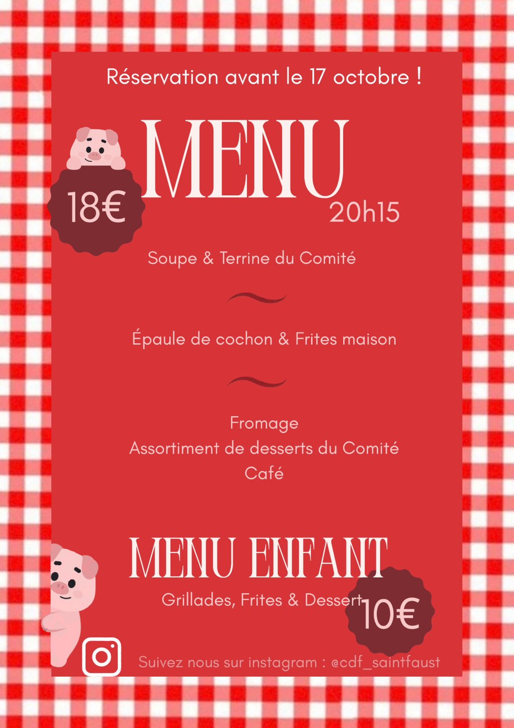 Le repas du cochon, 100 % fait maison par le comitĂ© des fĂȘtes, vous attend !