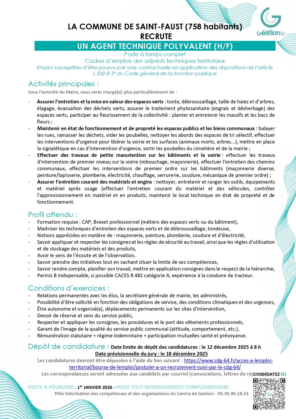 LA MAIRIE DE SAINT FAUST RECRUTE
