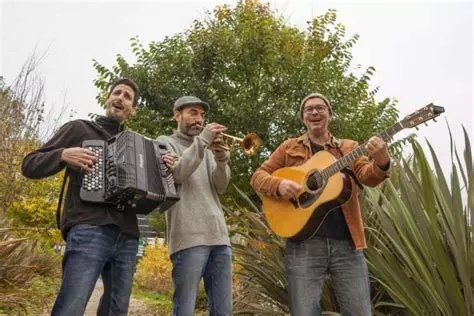 Un accordéon, une trompette, une guitare, un ukulélé, trois voix et une passion commune pour les mots et les notes.