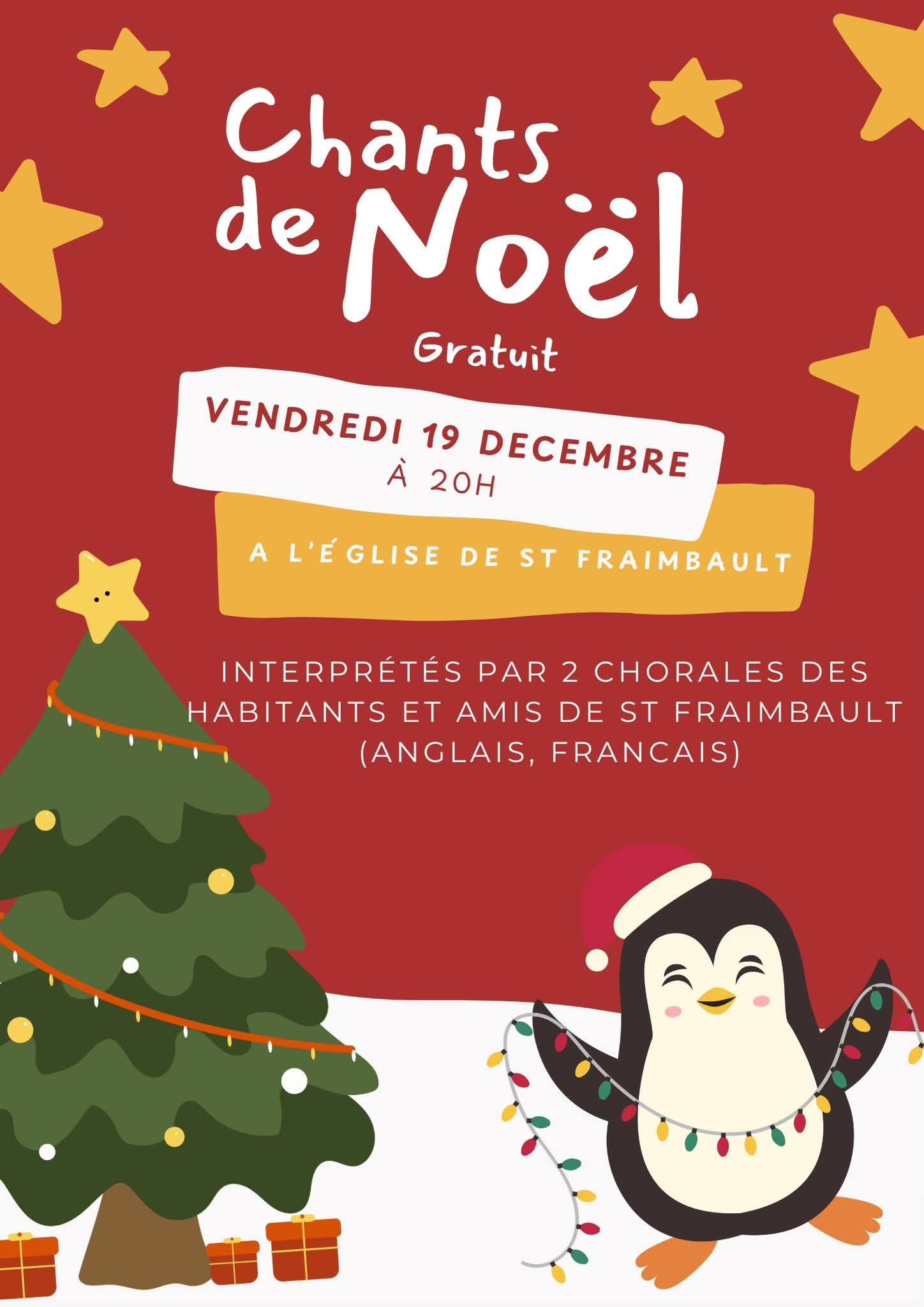 Un chant de noël gratuit aura lieu le vendredi 19 décembre 2026 à l'Eglise de Saint-Fraimbault.