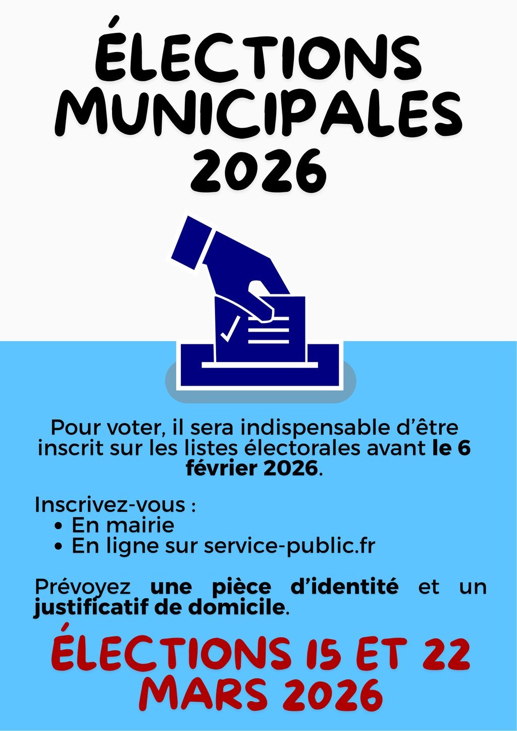 Les élections municipales auront lieu les 15 et 22 mars 2026.
