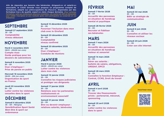 Le CDOS Gironde propose des formations variées, destinées aux associations sportives et non sportives, pour les bénévoles, les dirigeants, les salariés…