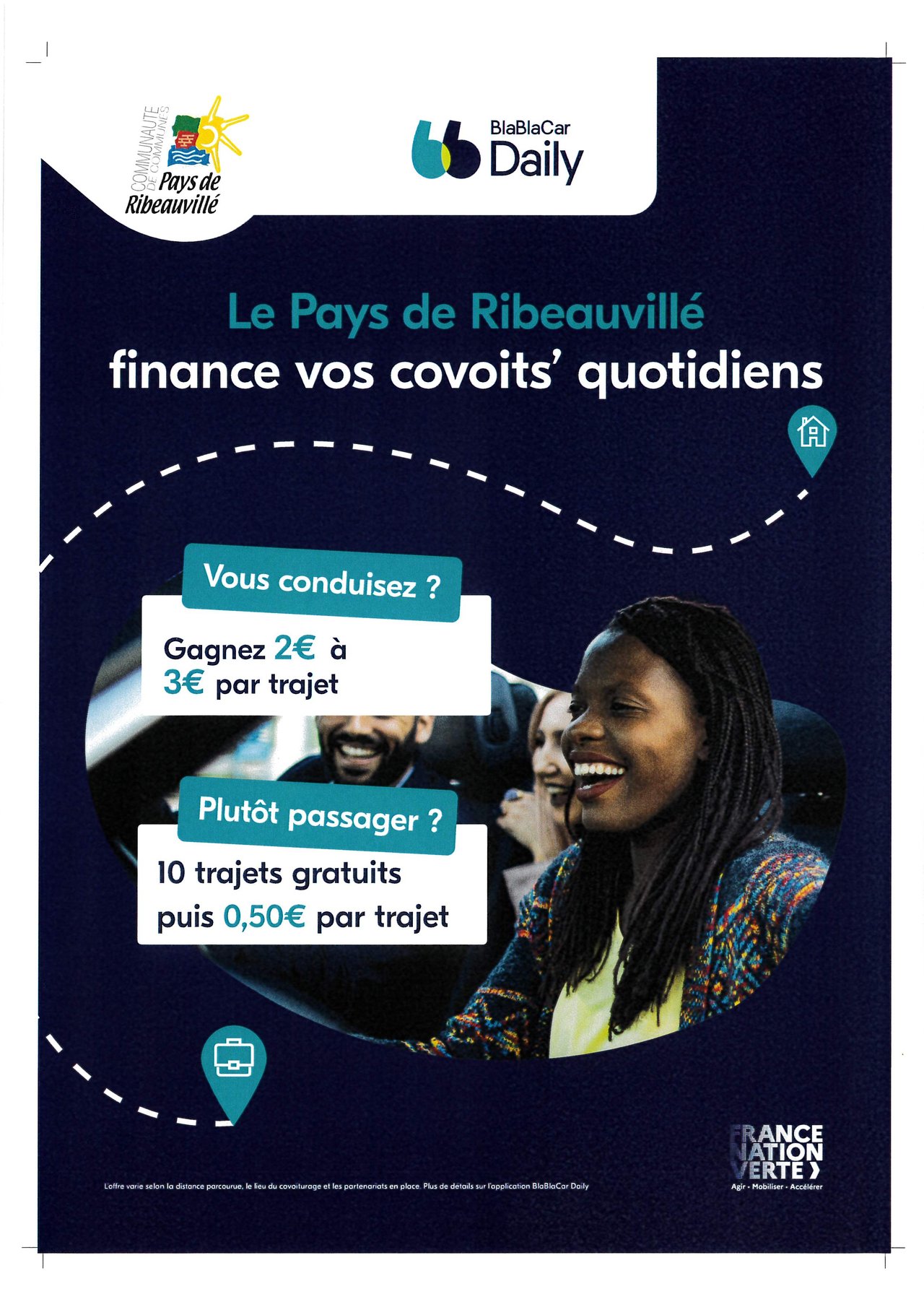 La com com du Pays de Ribeauvillé met en place le covoiturage avec BlaBlaCar Daily… et vous aide à payer vos trajets !