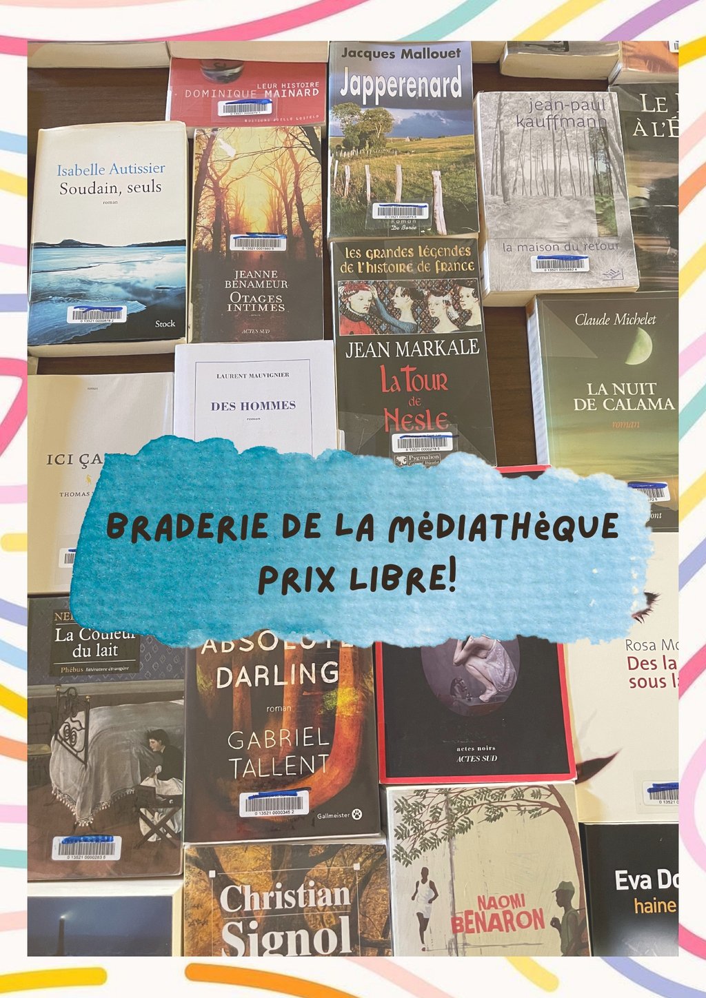 Braderie de livres à la médiathèque : vous y retrouverez des romans, des BD enfants&adultes et des albums jeunesse.