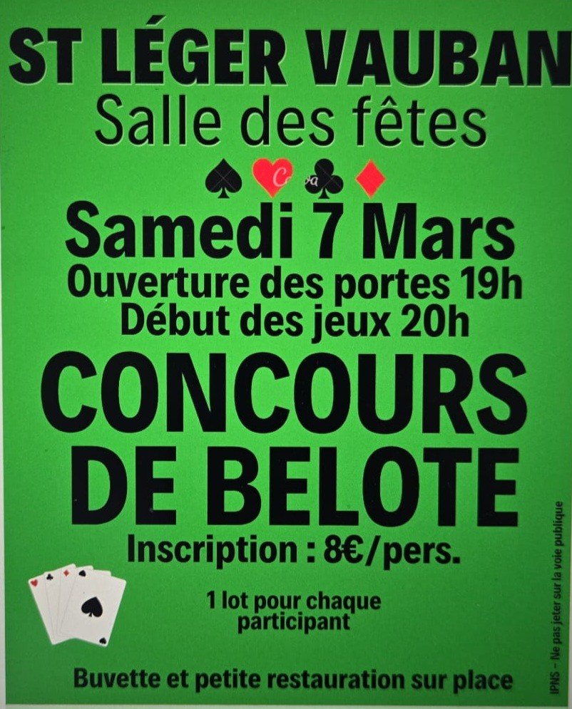 Concours de belote Saint-Léger-Vauban, le 07 mars 2026.