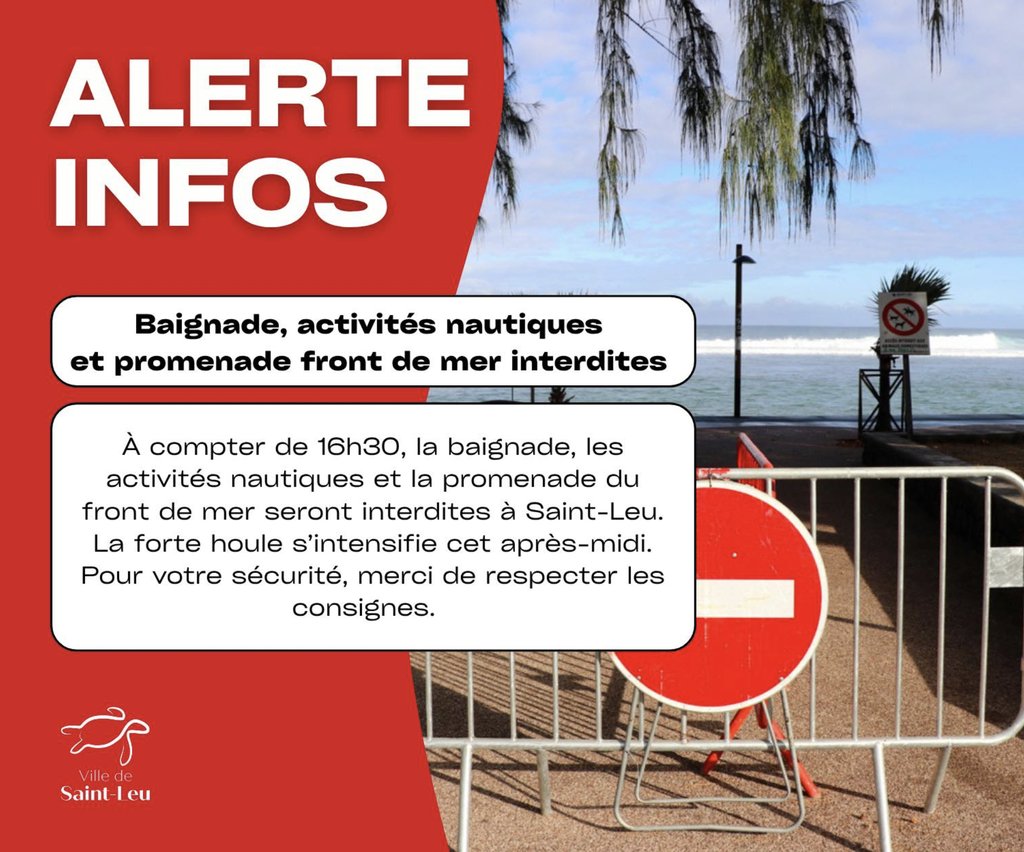 La houle continue de se renforcer ce samedi 15 novembre sur le littoral saint-leusien. Face à ces conditions qui impactent directement nos plages et le littoral, la Ville de Saint-Leu a décidé de prendre des mesures pour protéger la population.