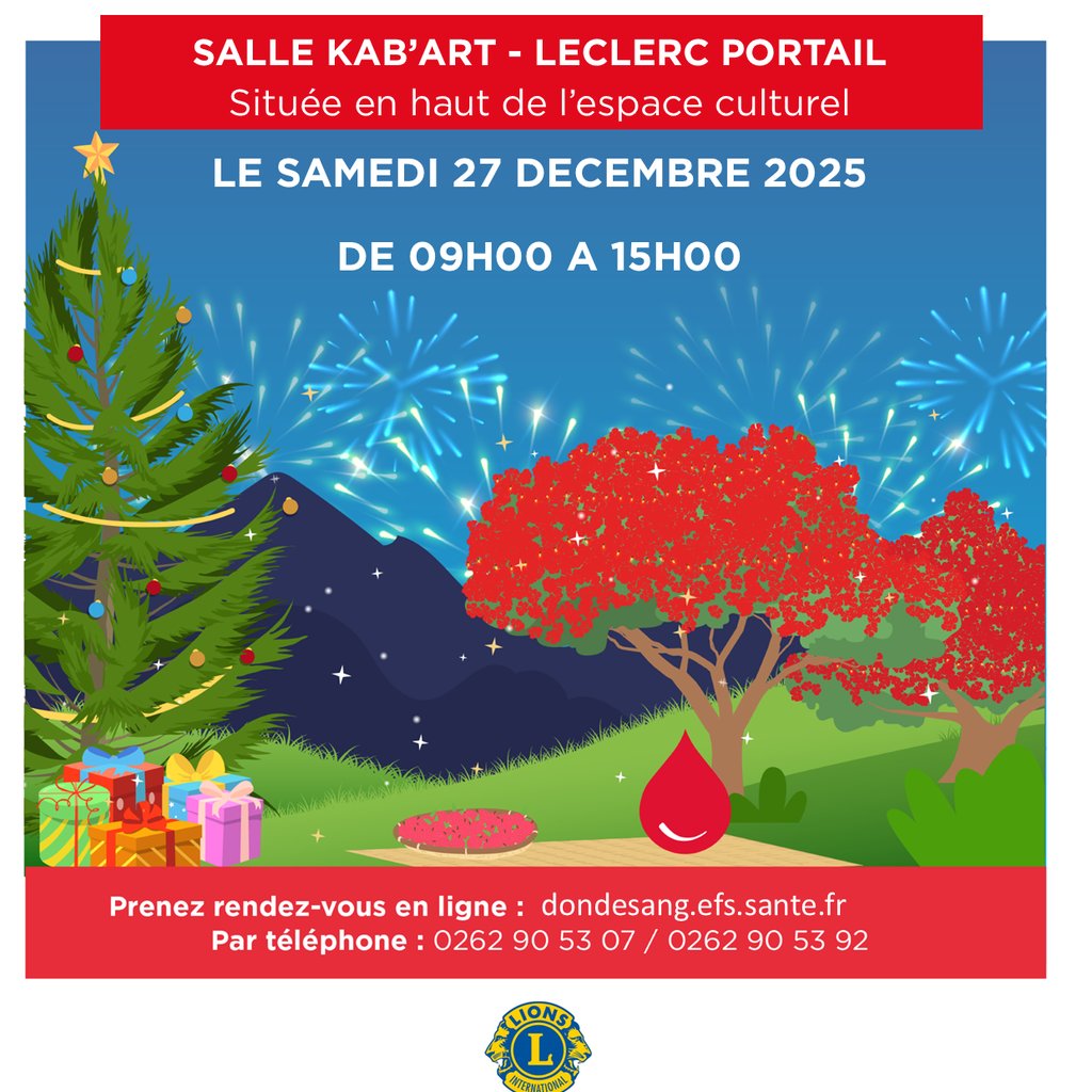 Les équipes de l’EFS seront mobilisées le samedi 27 décembre 2025 à la Salle Kab'Art - Leclerc Portail, pour accueillir les donneurs. Entre deux repas de famille ou après l’ouverture des cadeaux, il est possible de faire une halte solidaire : une heure suffit pour sauver jusqu’à trois vies !
