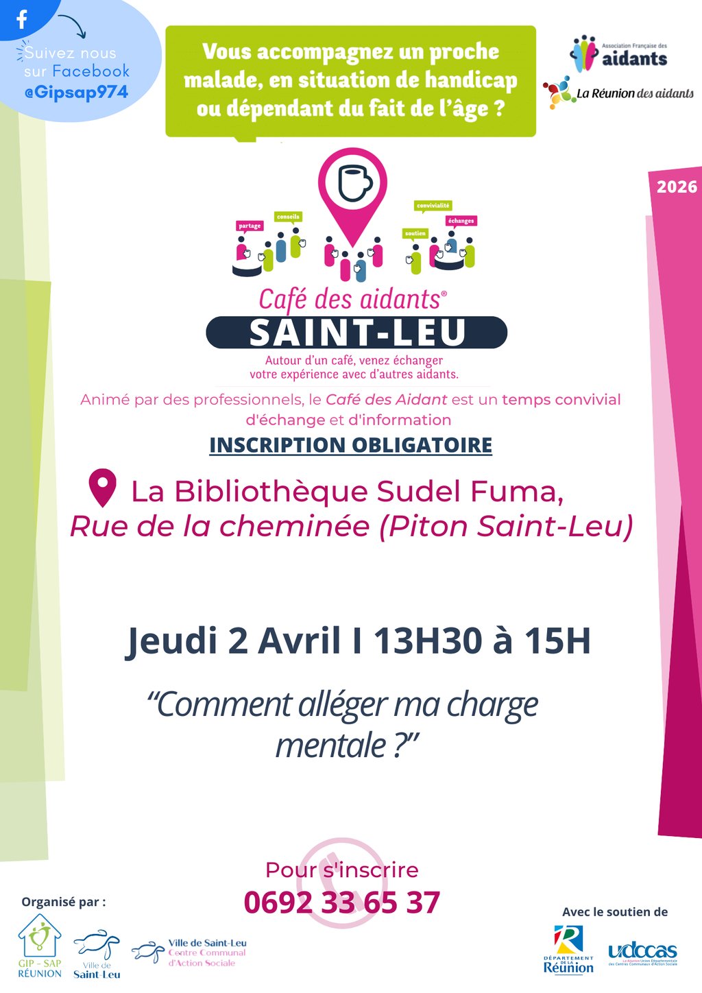 La Ville de Saint-Leu, en partenariat avec le GIP-SAP, vous invite au Café des Aidants. Un espace convivial pour échanger, partager votre expérience et trouver du soutien auprès de professionnels et d'autres aidants, autour d'un café.