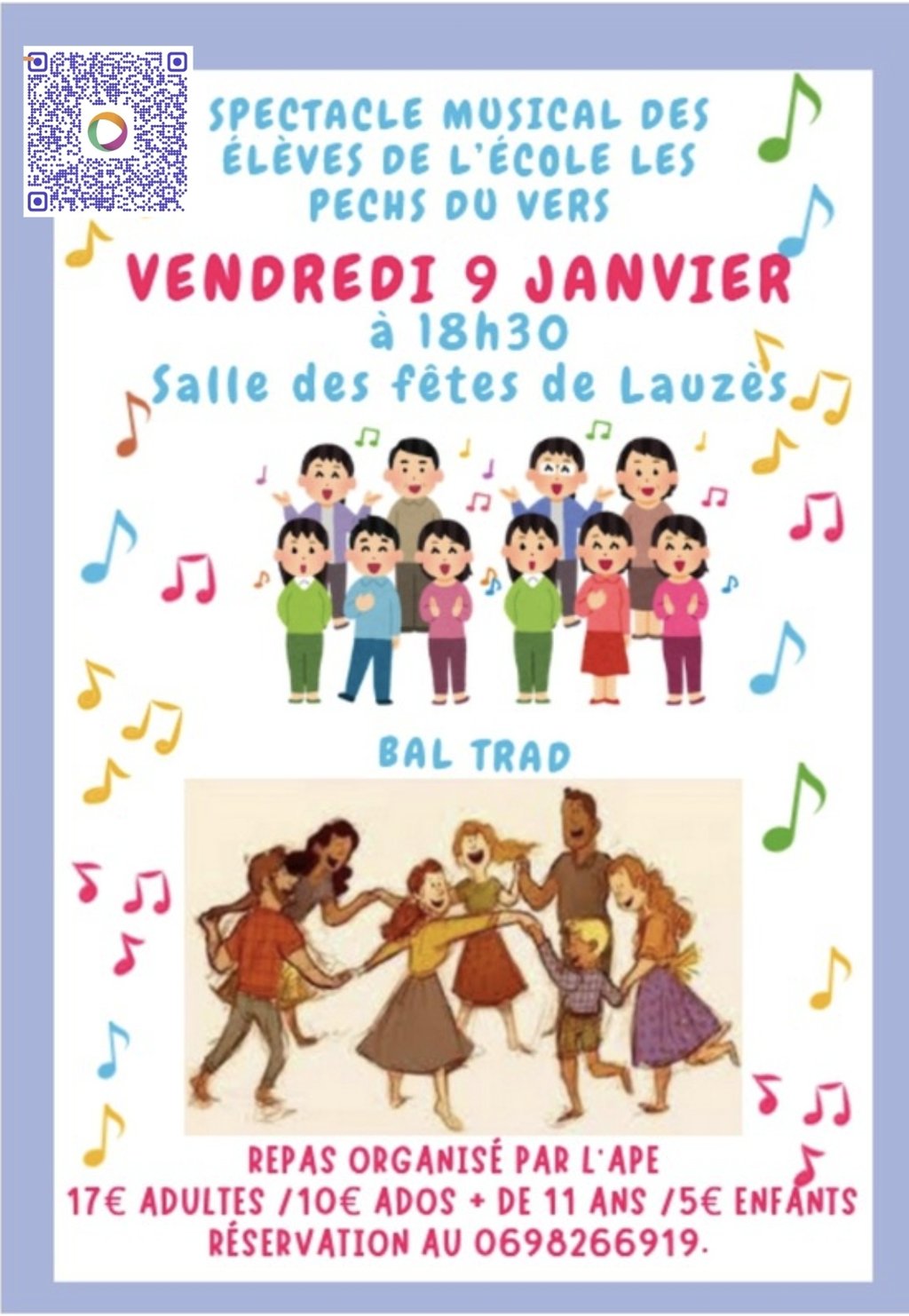 Cette soirée débutera à 18h30 par le spectacle des enfants travaillé avec Olga, Dumiste de l'école de musique qui intervient en classe grâce au financement de l'APE.