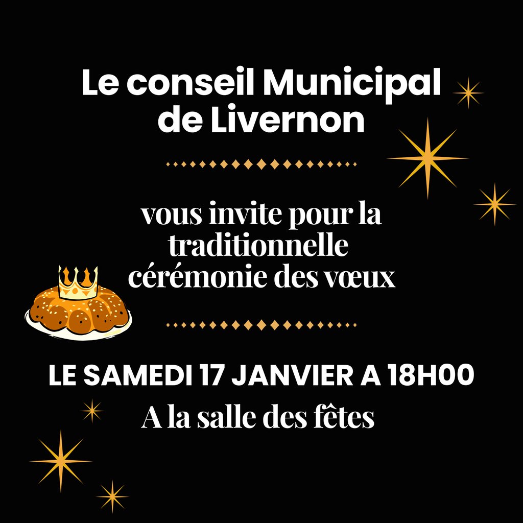 La traditionnelle cérémonie des vœux se déroulera le 17 Janvier à partir de 18h00 à la salle des fêtes de Livernon.