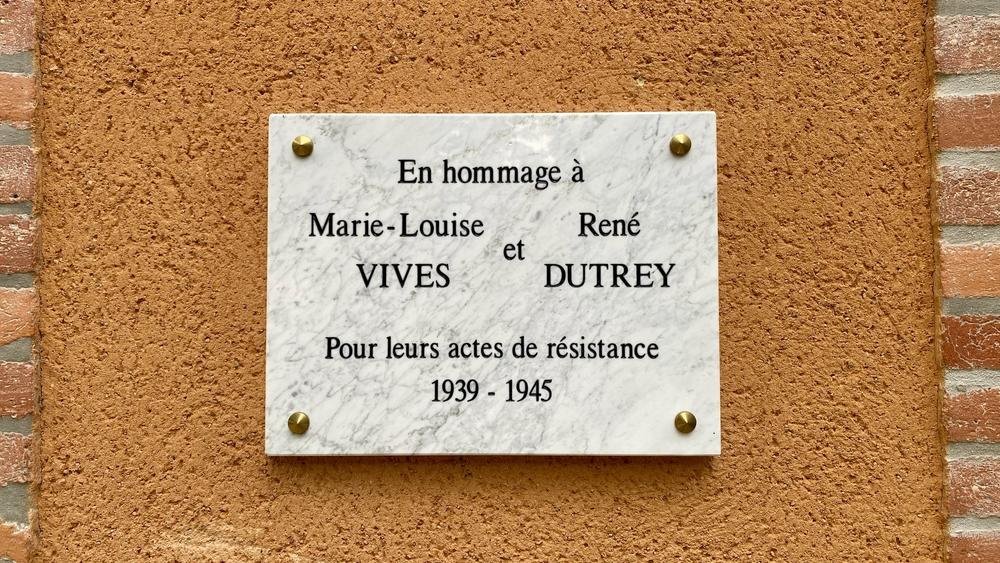 Sur les murs de la Mairie, une plaque rend hommage à l'engagement et au courage de Marie-Louise Vivès et René Dutrey, deux héroïques de la Résistance du village de Saint-Martin.
