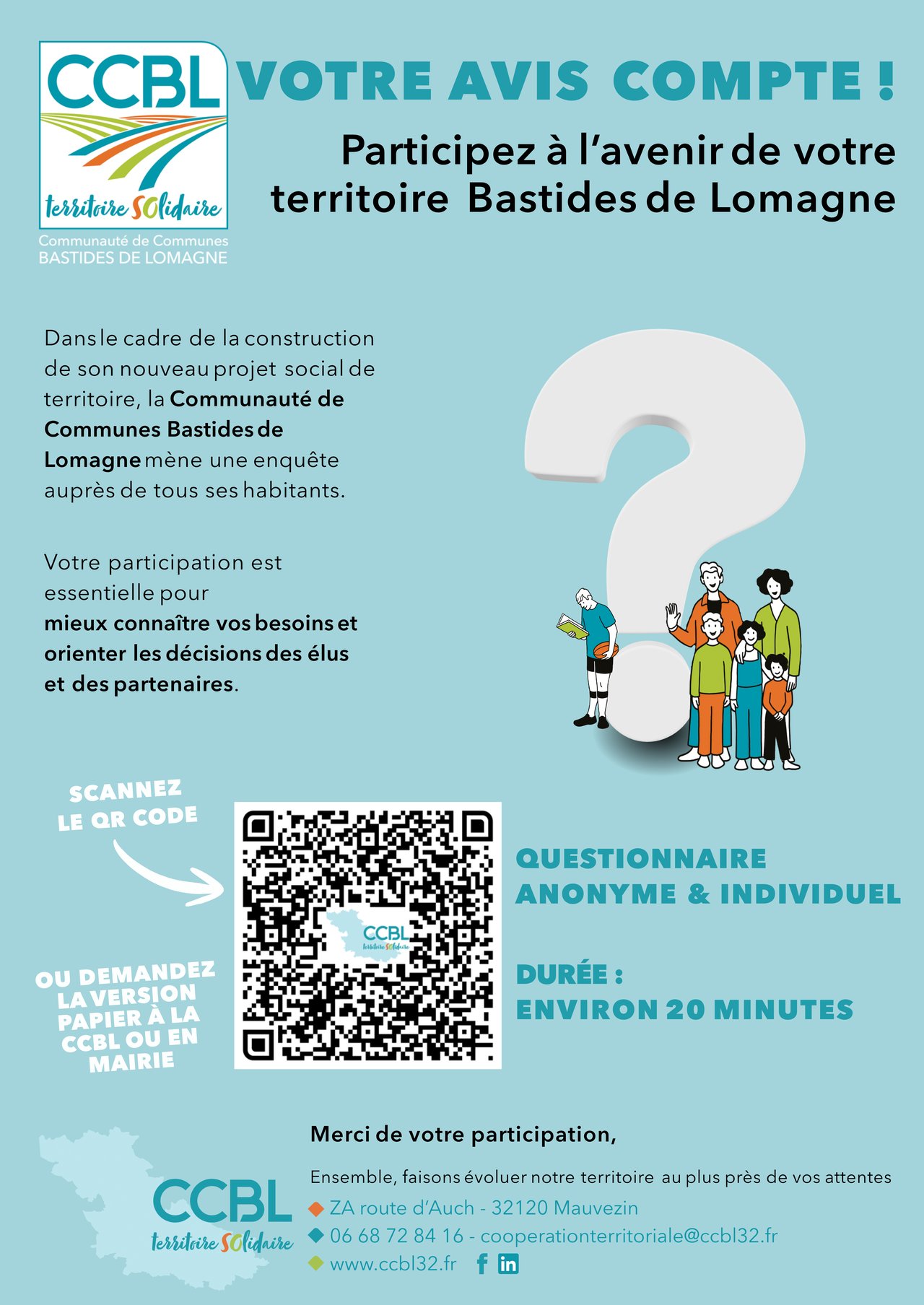 Suivez le lien pour remplir le questionnaire ou demandez la version papier à la CCBL ou dans votre mairie.