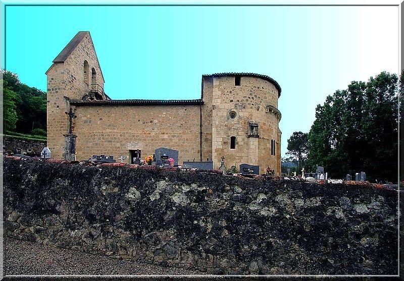 Construite près d'un site gallo romain, l'église de Gueyze conserve un superbe ensemble de chapiteaux romans : lions dévorants des fruits, oiseaux affrontés, Christ dans une mandorle, Chrisme, motifs végétaux et floraux et des modillons romans des XIème et XIIème siècles. La nef est à peine plus tardive. Le chœur en forme de trèfle, dans un chevet semi cirulaire est plus large que la nef. L'église est dotée d'un clocher mur ouvert de deux baies campanaires. Inscrite aux Monuments Historiques en 1925, seule l'abside est protégée.
