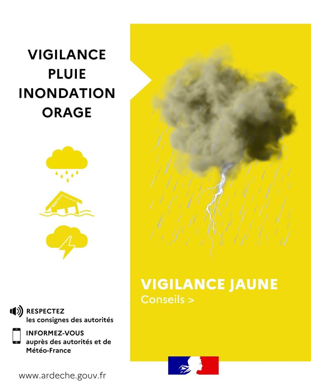 🟡 🌧️ Jaune Pluie-inondation, de 11h à 21h