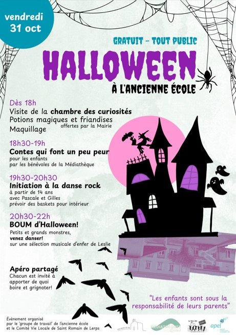 Le "groupe de travail" de l'ancienne école et le comité Vie Locale vous proposent HALLOWEEN à l'ancienne école vendredi 31 octobre !
