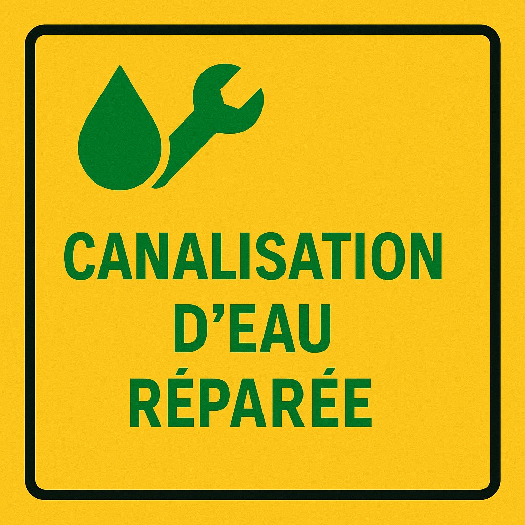 La canalisation a été réparée par les équipes de Veolia . Attention risque d'eau blanchâtre et coups de bélier le temps d'une remise globale du réseau .