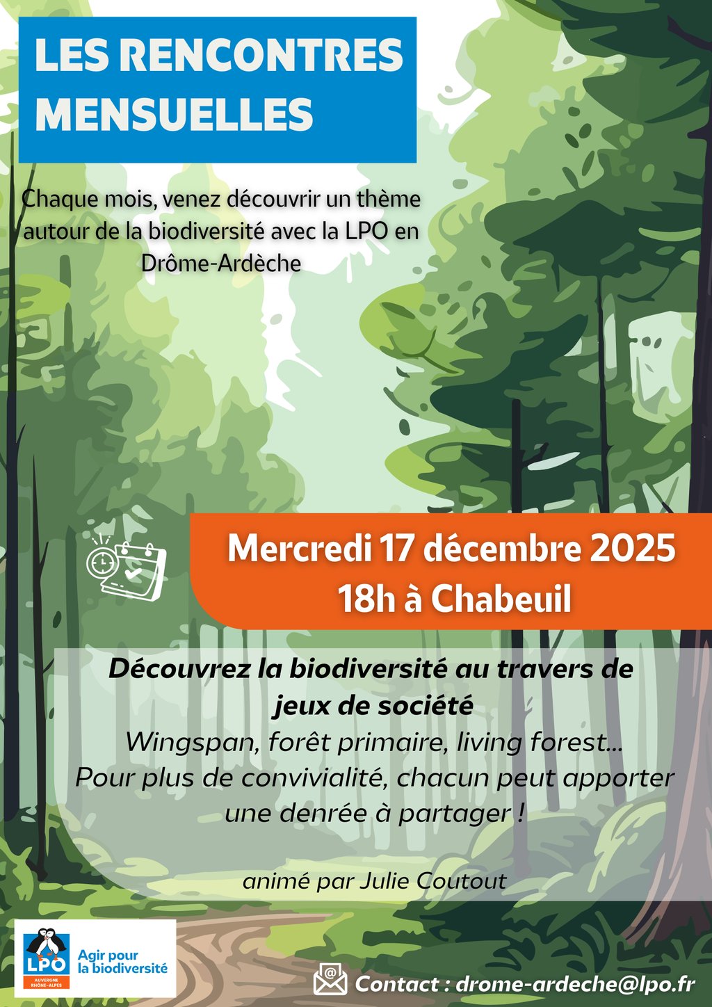 Les Rencontres mensuelles avec la LPO : soirée jeux !