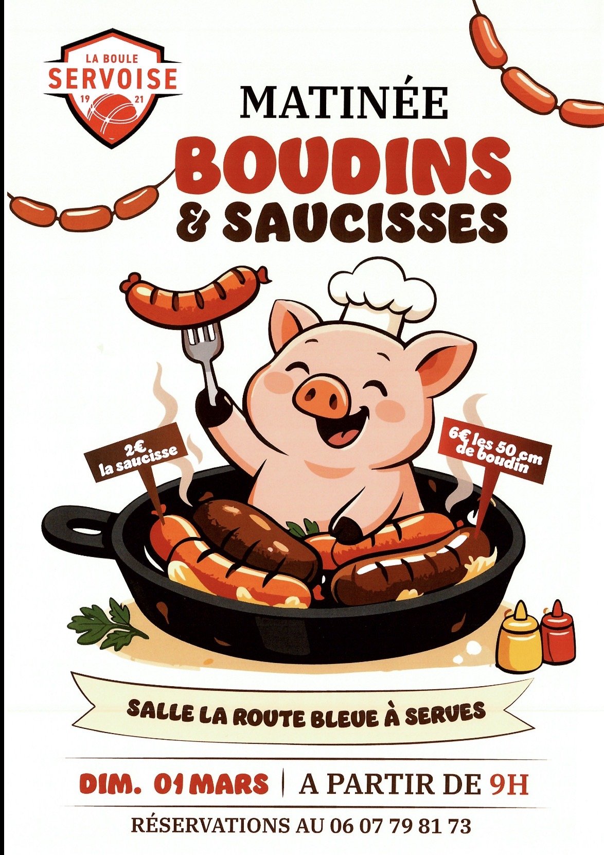 Bonjour a toutes et a tous, voici l'affiche pour notre matinée boudin du dimanche 1er mars dès 9h