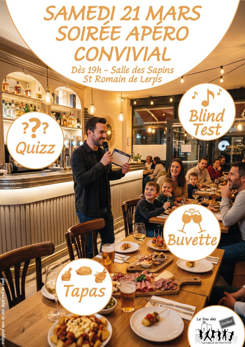 Le Sou des Ăcoles de Saint Romain de Lerps vous invite Ă une soirĂ©e festive et conviviale đ„ł