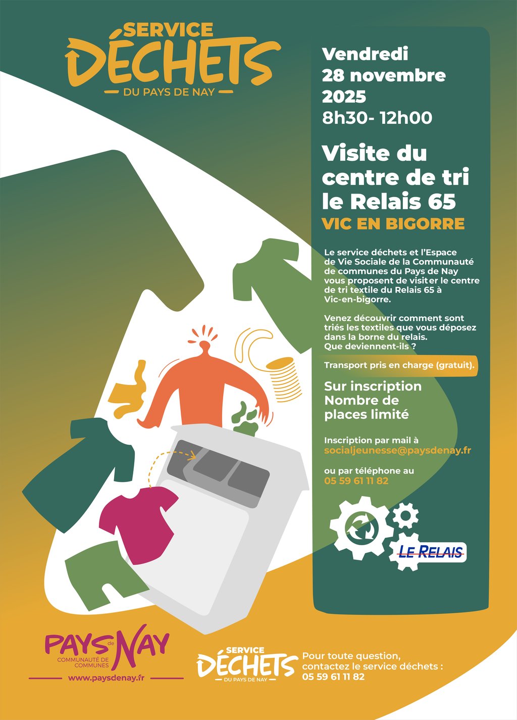 Le service Déchets et l’Espace de Vie Sociale de la CCPN vous proposent une sortie exceptionnelle pour découvrir les coulisses du tri textile au Relais 65 à Vic-en-Bigorre.