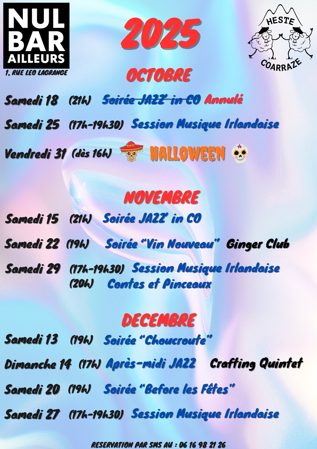 Voici le programme des animations au "Nul Bar Ailleurs" pour le 4 ème trimestre 2025