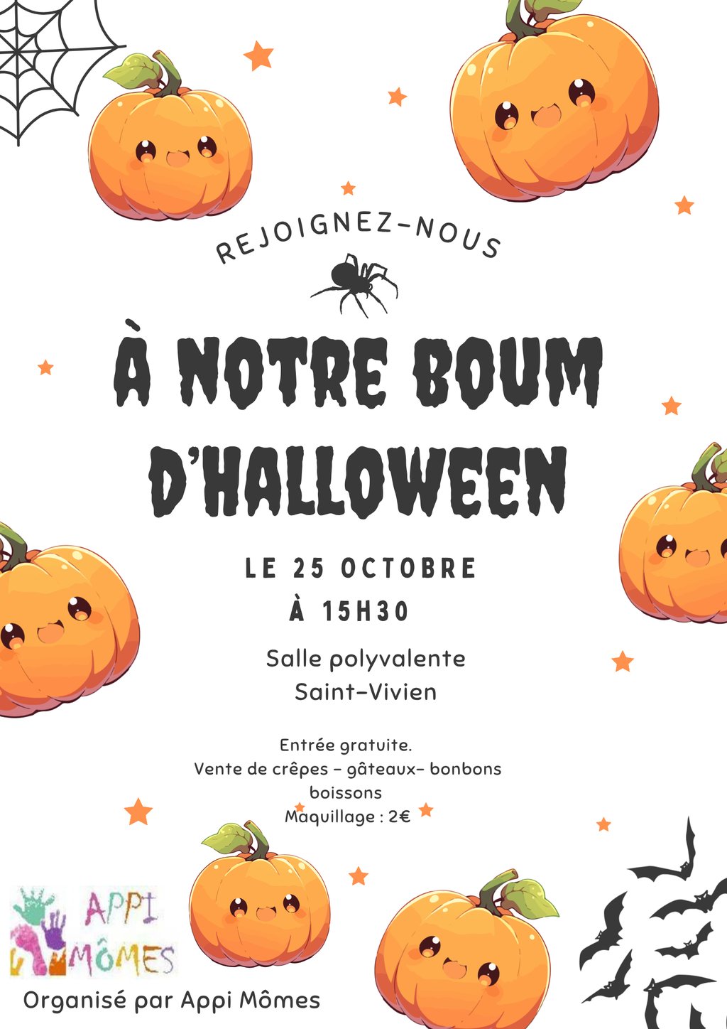 L’association APPI MOMES organise une Boum d’HALLOWEEN le samedi 25 octobre à 15h30 dans la salle polyvalente.