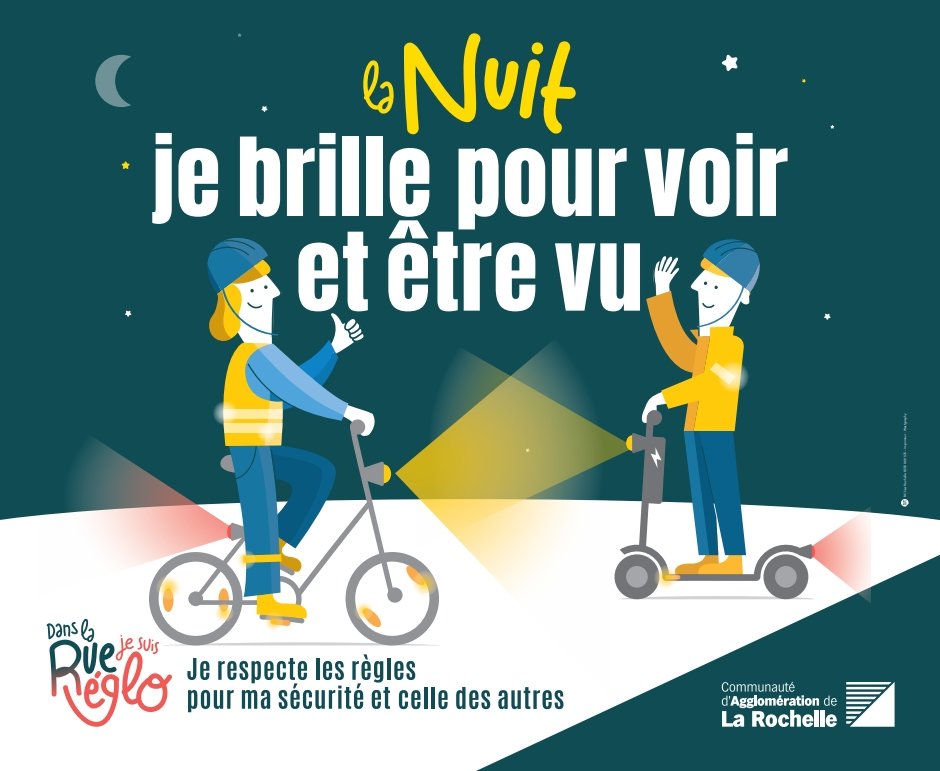 Pour garantir la sécurité de tous à la tombée de la nuit, l’Agglomération de La Rochelle et ses partenaires (la Ville de La Rochelle, la Police nationale et municipale, la Sécurité routière), avec les associations vélo, rappellent les règles essentielles pour bien voir et être vu sur la route.