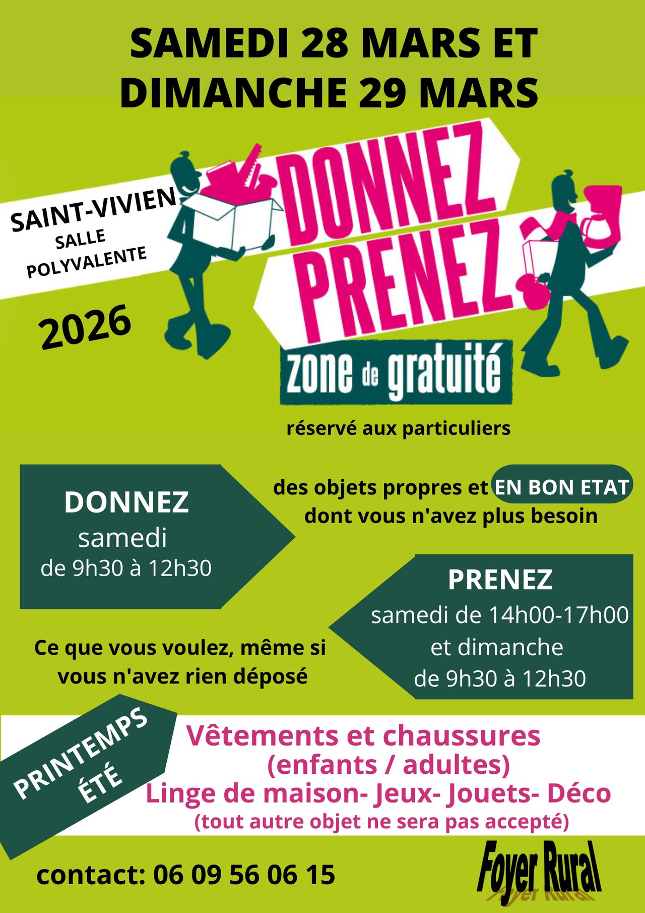 La zone de gratuité de printemps se déroulera le samedi 28 et dimanche 29 mars 2026 à la salle polyvalente.