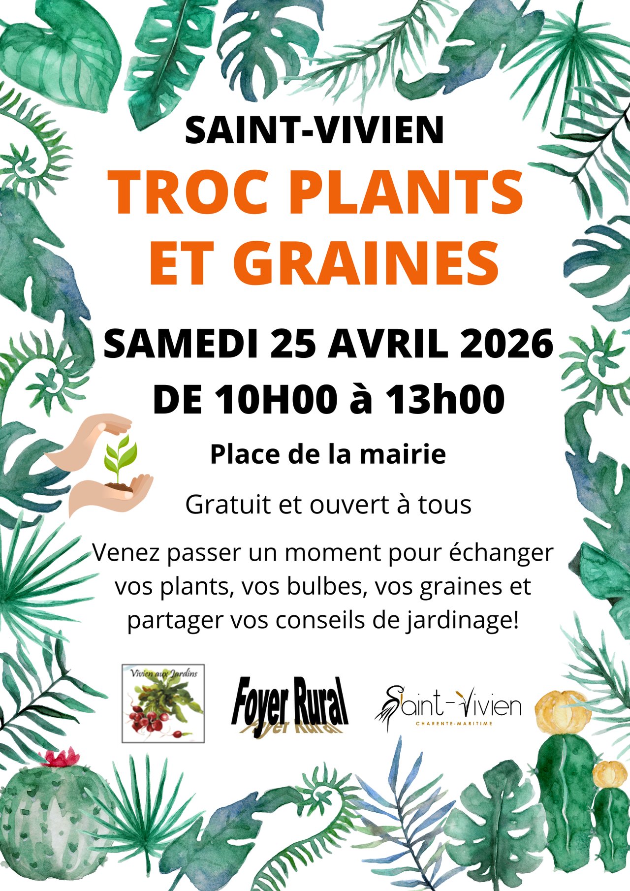 Pour les amoureux du jardinage : venez partager ou découvrir les secrets des plantes le samedi 25 avril 2026 de 10h00 à 13h00 sur la place de la mairie ! Vous trouverez des experts et des passionnés pour des conseils sur le jardin et les cultures.