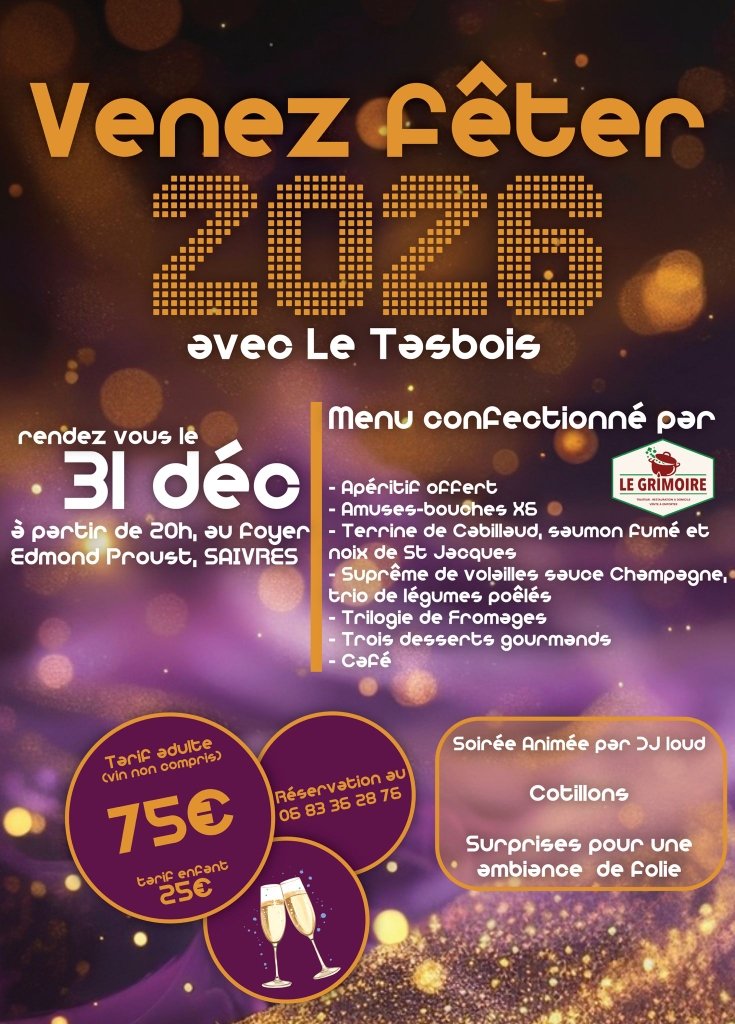 RÉVEILLON DE LA ST SYLVESTRE ORGANISÉ PAR L'ASSOCIATION TASBOIS