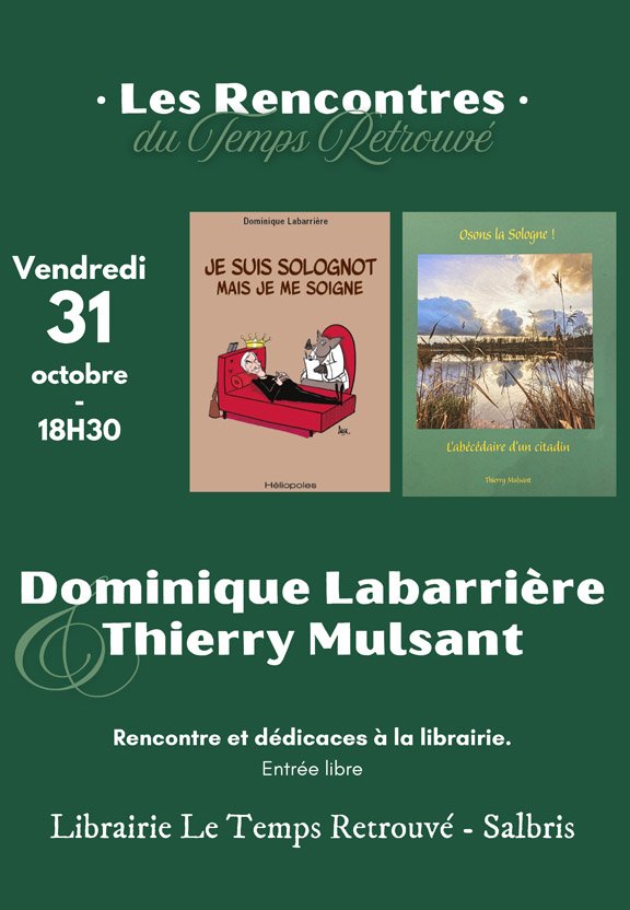 👉 Venez rencontrer Dominique Labarrière et Thierry Mulsant pour une soirée d’échanges et de dédicaces autour de leurs ouvrages :