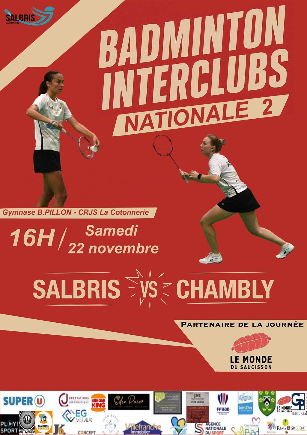 Le Salbris Badminton Club vous donne rendez-vous samedi 22 novembre à 16h, au gymnase B. Pillon – CRJS La Cotonnerie, pour une rencontre au sommet :