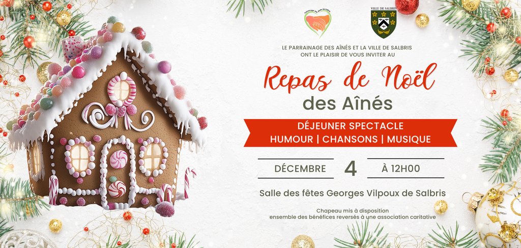 Organisé parle CCAS de la Ville de Salbris et l'association du Parrainage des Aînés, un repas de Noël en faveur des aînés (75 et +) est organisé le jeudi 4 décembre à 12h00 à la Salle des fêtes.
